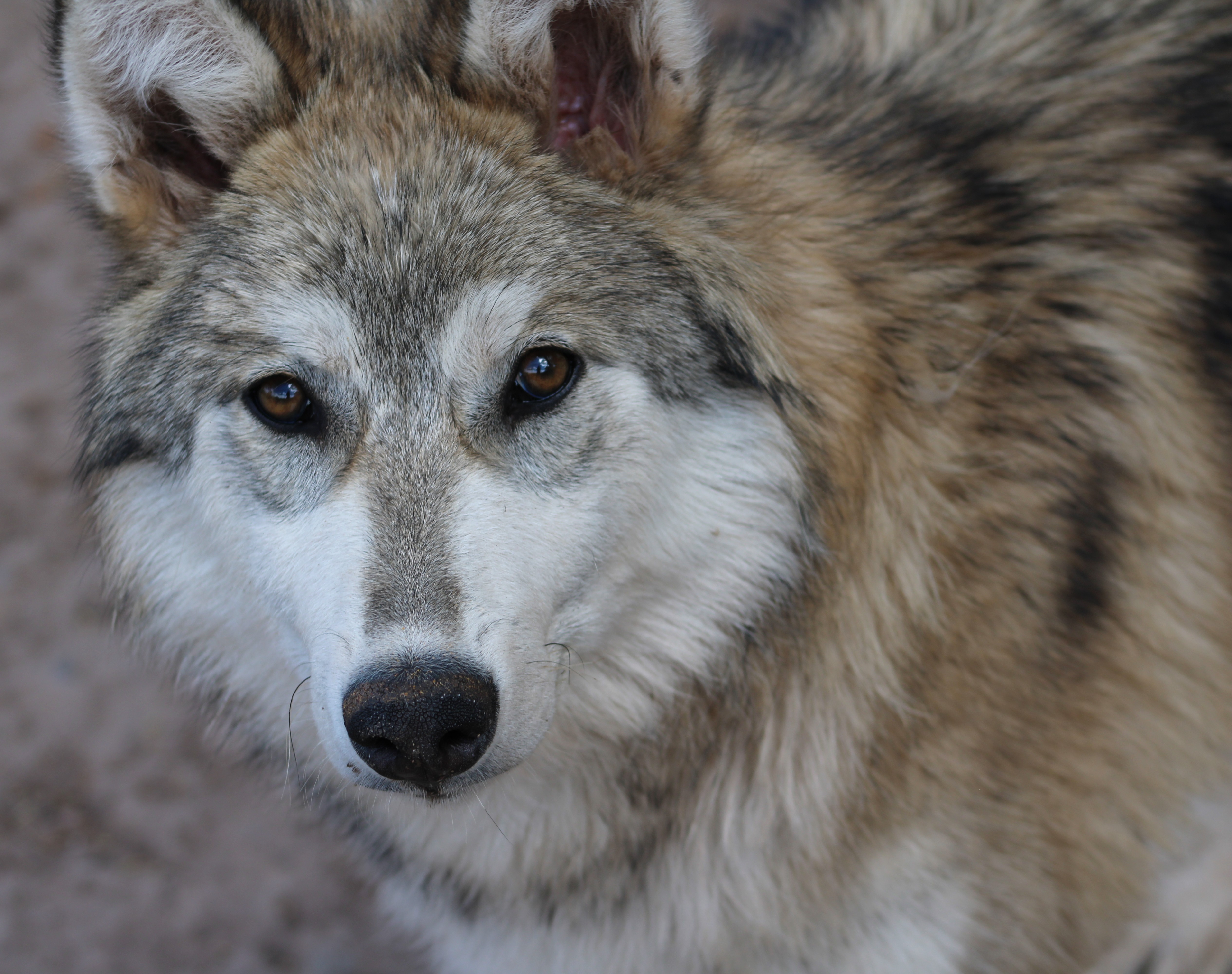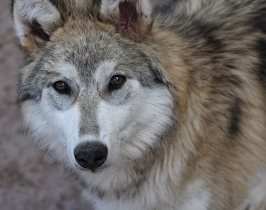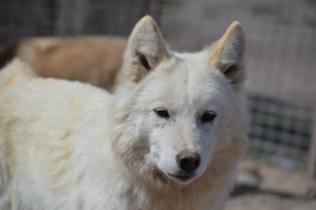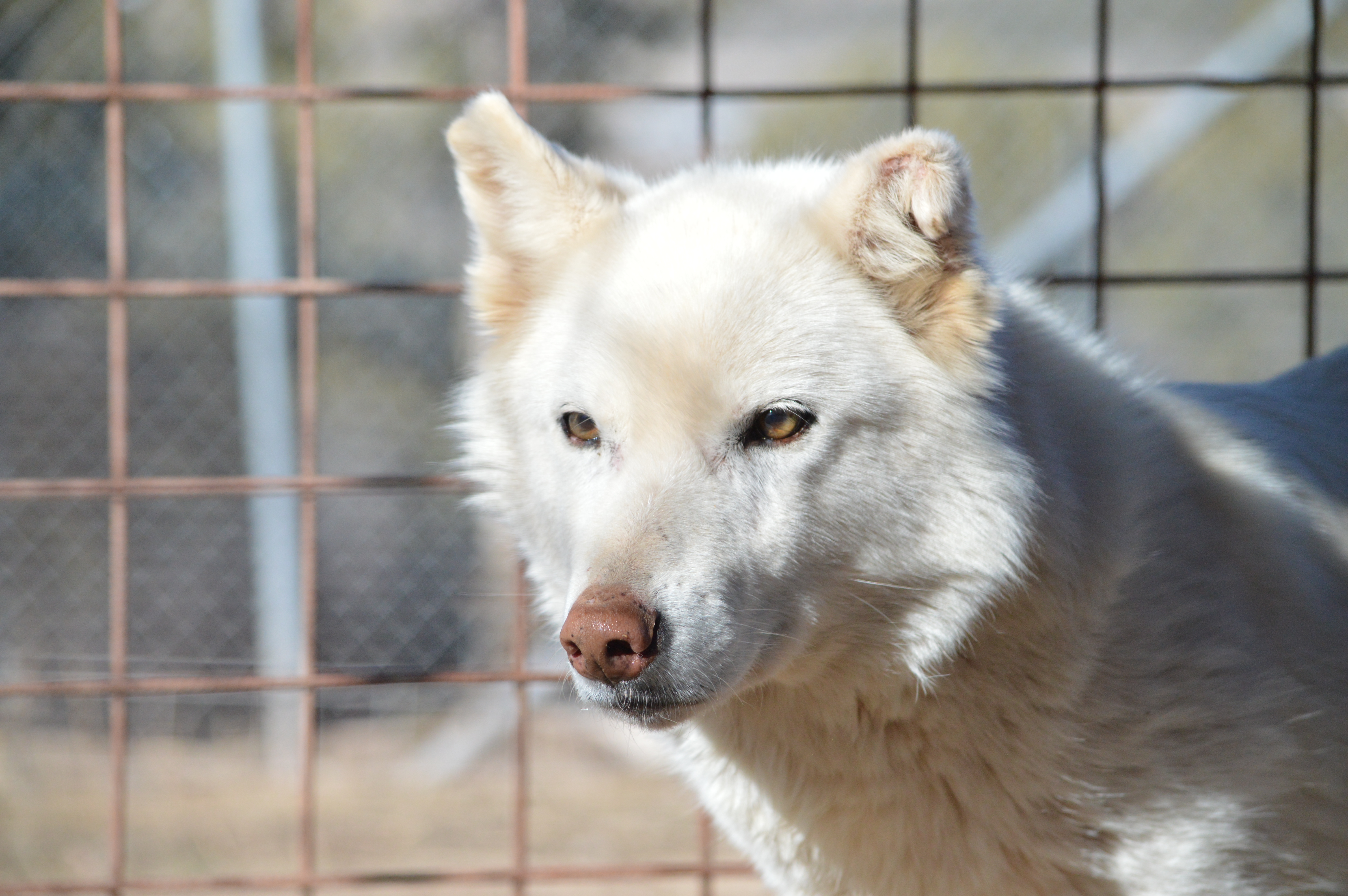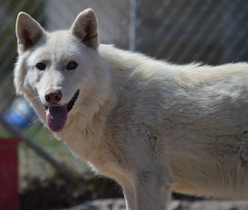Knight was rescued as a few weeks old puppy with his littermates Nanuk and Truckee. Knight is the most independent of his littermates but feels more confident when he has his sister nearby. Knight explores the world more like a wolf than a dog as he can be more cautious about new things. Knight is sweet and gentle with his human friends, and loves to be pet and get attention. He is more picky about who his canine friends are, but once he chooses them they are friends for life. Knight still lives with his sister Nanuk. There is potential for them to have a third penmate at some point in their future.