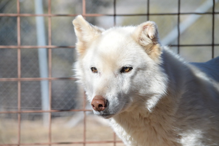 Agustus is a testament to how resilient animals can be even given the worst circumstances. Even in his small wire cage at the fur farm, Gus always had a smile on his face and would play-bow to anyone who walked by. At the refuge he continues to be a big goofy boy, running around his pen and playing with his partner Honu. In 2025 he was estimated to be between 4-5 years old. Gus has a minor disability from his life in Ohio which is an underdevelopment of the tendons in his front feet. Time and exercise have helped with the issue, but he will always walk a little more flat-footed than normal canines. Gus lives with his partner Honu and shares a fence-line with “The Family,” Scout, Atticus, and Eros. Gus loves to spend time with Eros through the fence.