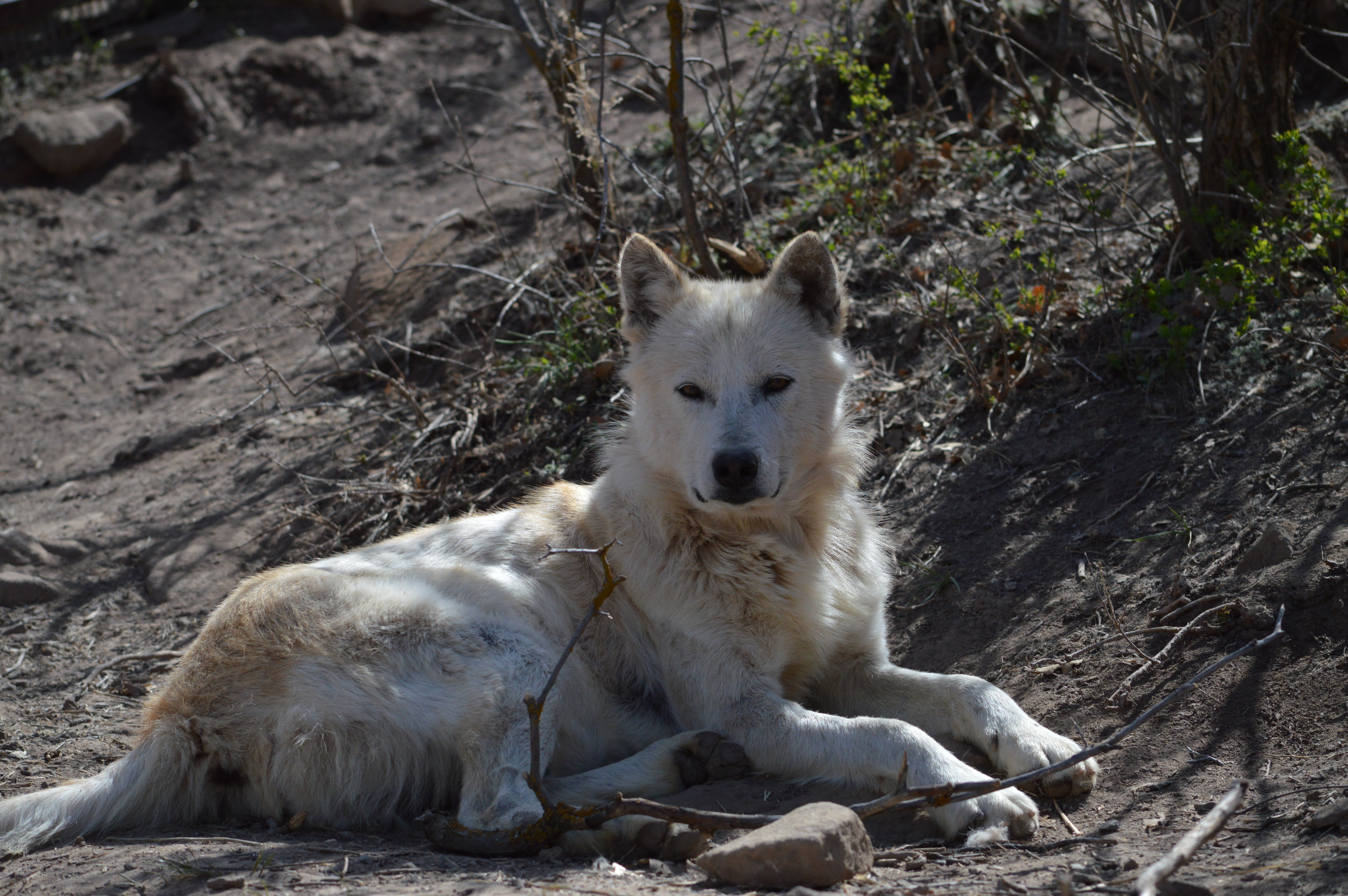 Scout is the mother of Eros and partner of Atticus. She is a fierce and at times indignant animal, but over time has also started to show her softer side. Scout took the trauma she experienced in Ohio particularly hard, and when she came to the refuge she also had intense post-partum hormones coursing through her system. After being spayed Scout tried to climb out of her temporary enclosure and as a result ripped her stitches out in the middle of the night. She had to be rushed to the vet for emergency life saving surgery. Her recovery time after this event was a month. Scout had a hard time being away from her family. Now she is reunited with her partner and son and seems especially content with her life. Scout is one of the few who have come around to liking to be pet through the fence. She will rub along the fence-line and let a select few give her scritches as she goes by. In the pen she will also give wolf-rubs occasionally. Scout is finally able to relax, and is happy.